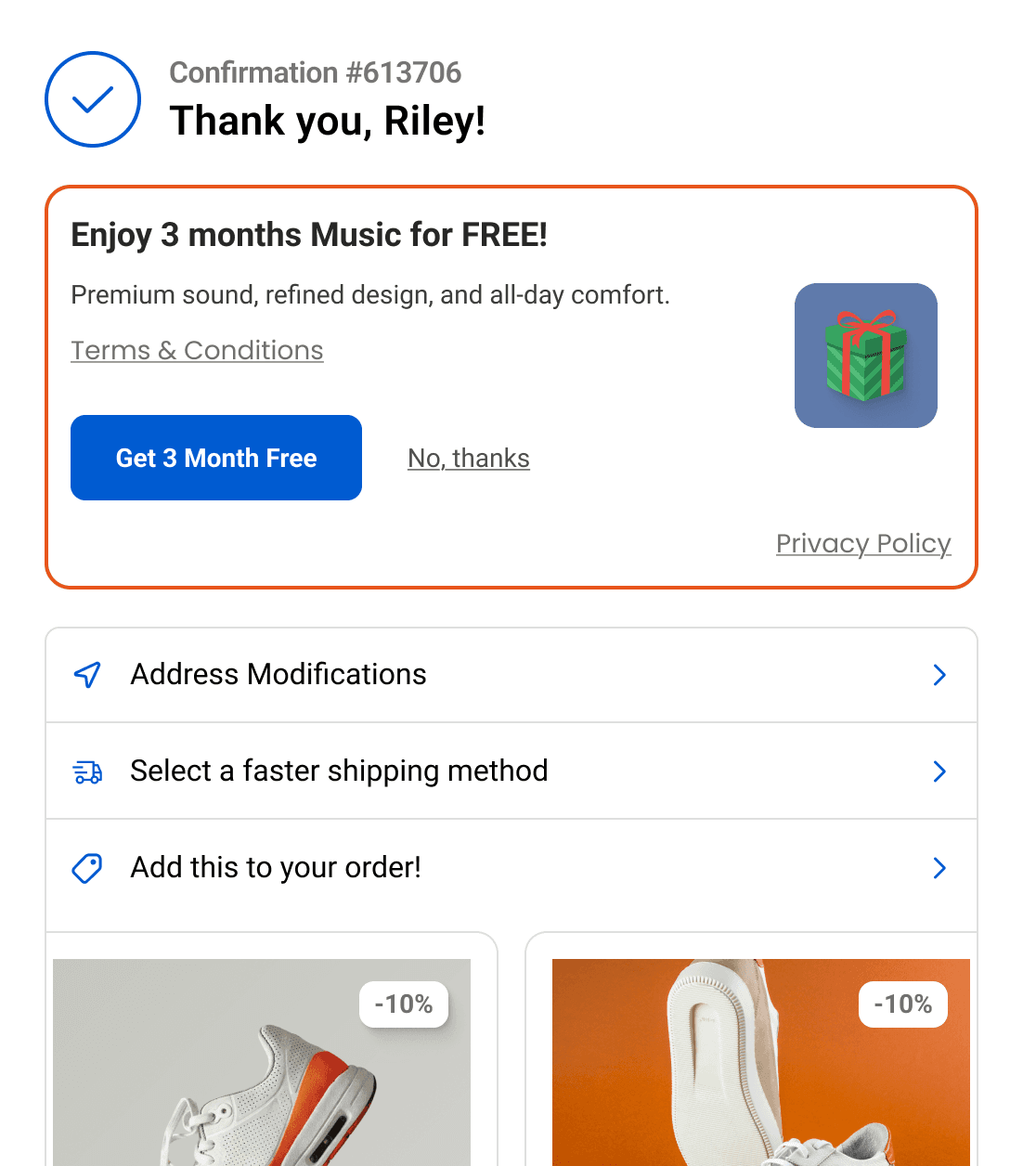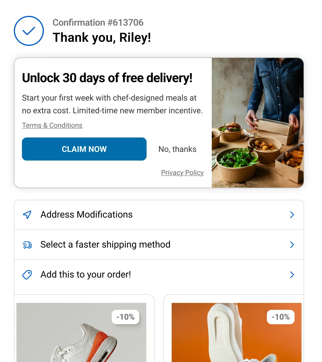 Products that render after checkout - upsell flows, thank-you page builders, offer widgets.